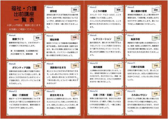 社協では、地域の集会等にお伺いし、体験や学習をしていただく、出前講座を